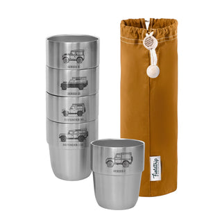 Expedition Cup Set - Stacking, Insulated Stainless Steel Cups with Oilskin Bag