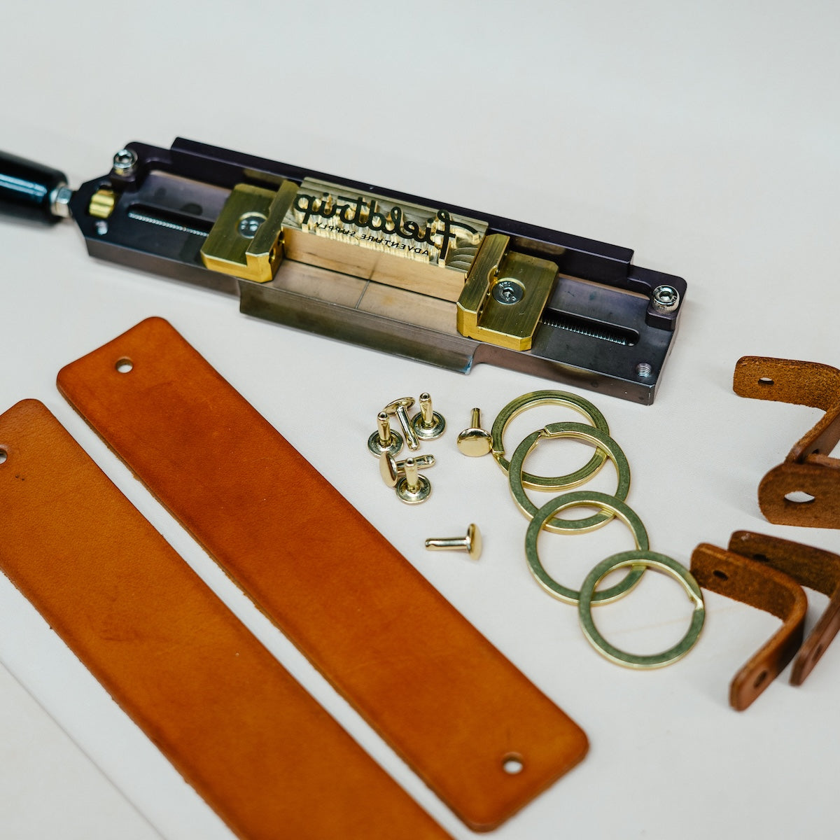 Each keyring is individually cut, dyed and finished by hand before being fitted with a solid brass split ring and rivet. Once complete, the leather is heat-embossed with the Fieldtrip logo.