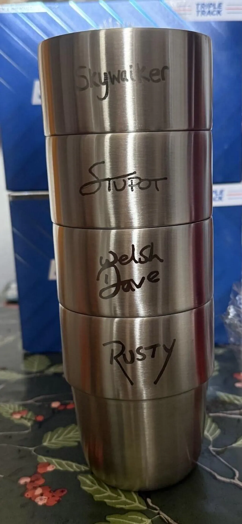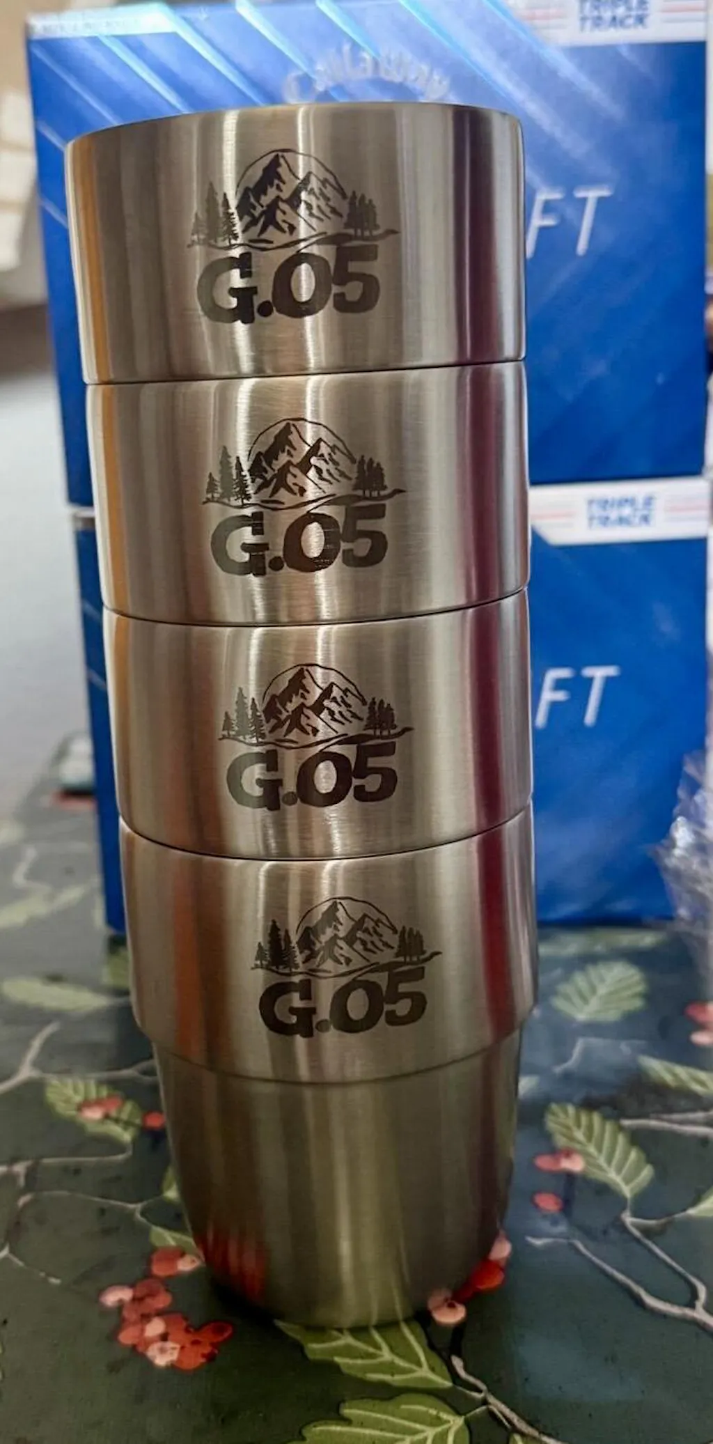 I ordered the 4 cup set with a custom engraving option and couldn't be happier with the results. I requested that each cup be different as they are gifts for a reunion of friends from our time in the USA. Really happy with the speed of production, dispatch and delivery as well as the quality and communication with Tristan. I Would highly recommend this product to anyone as they are a great gift with a lovely oilskin bag includedand high quality packaging. Thanks again.